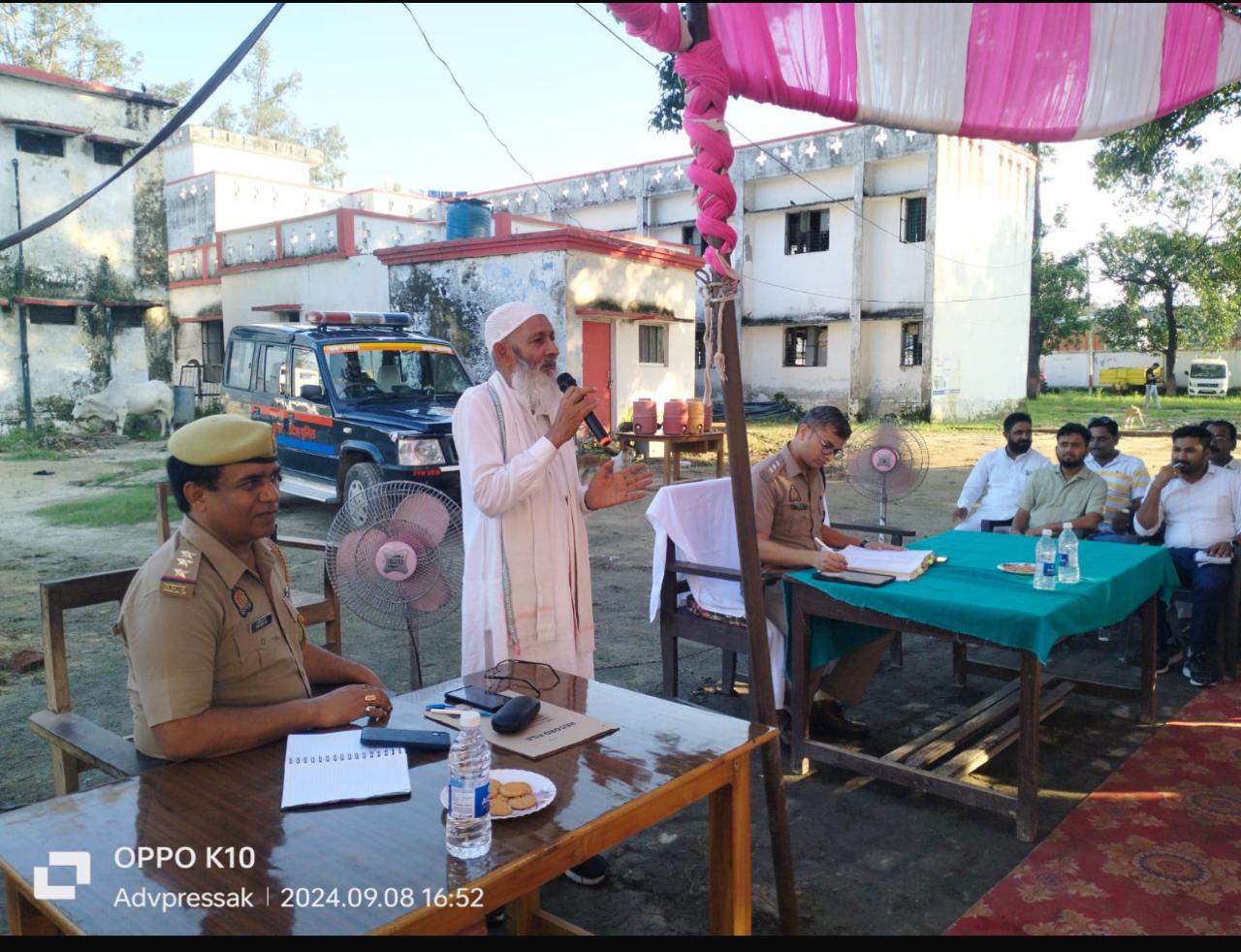 उतरौला(बलरामपुर) आगामी गणेश पूजा पर्व व बारह रबीउल अव्वल त्यौहार को लेकर कोतवाली परिसर में सीओ राघवेन्द्र सिंह की अध्यक्षता में शांति समिति की एक बैठक की गई।बैठक में गणेश पूजा समिति के आयोजकगण,प्रधान,बीडीसी,सभासद गण समेत तमाम संभ्रांत लोग उपस्थित रहे।इस दौरान त्यौहारों पर साफ सफाई पेयजल,व प्रकाश व्यवस्था चुस्त दुरूस्त रखने की बात कही गई।एक दिन के अंतराल में पड़ रहा गणेश विसर्जन व बारह रबीउल अव्वल का जूलूस शांति पूर्वक निकालने की बात रखी गई। बैठक में इन त्योहारों पर खलल डालने वाले उपद्रियों पर पैनी नजर बनाए रखने की बात प्रभारी निरीक्षक संजय कुमार दूबे ने चेतावनी देते हुए कही।जामा मस्जिद के पेश इमाम अख्तर रजा खां ने बारह रबीउल अव्वल के दौरान निकलने वाले जूलूस का समय व अन्य कार्यक्रम के बारे में लोगों को जानकारी देते हुए अपने विचार रखे।इसी तरह हिन्दू समुदाय के जिम्मेदार लोगों द्वारा गणेश विसर्जन के दौरान जुलूस का समय तथा मार्गों के बारे विस्तार पूर्वक जानकारी दी गई। अंत में प्रभारी निरीक्षक संजय कुमार दूबे ने बैठक में आए हुए सभी लोगों का आभार व्यक्त किया। इस मौके पर आदिल हुसैन,जेई पवन कुमार,दीपक चौधरी,अमर सोनी,अबरार अहमद,लोकतंत्र सेनानी चौधरी इरशाद अहमद गद्दी ,अल्ताफ रजा ,ऐमन रिजवी समेत तमाम गणमान्य नागरिक मौजूद रहे।