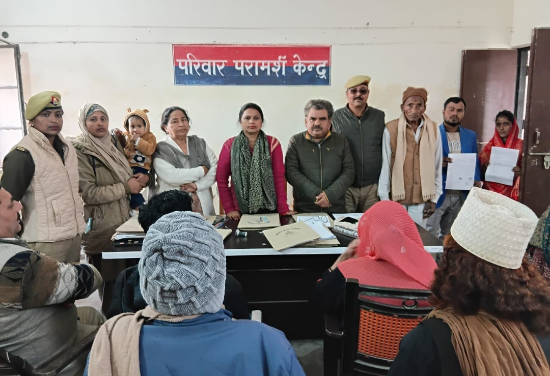 परिवार परामर्श केंद्र की बैठक में विचारार्थ प्रस्तुत मामलों में सक्रिय मध्यस्थता से पति-पत्नी एवं परिजनों के मध्य आपसी सुलह एवं समझौता कराकर 05 पारिवारिक विवादों का हुआ सफल निस्तारण किया गया। दोनों पक्षों ने आपसी मतभेद समाप्त करते हुए यह सहमति व्यक्त की कि अब वे सौहार्दपूर्ण वातावरण में प्रेमपूर्वक एक साथ जीवन यापन करेंगे। परामर्शदाताओं द्वारा दोनों पक्षों को यह सलाह दी गई कि वे अपने बड़ों का सम्मान करें एवं जीवन की नई शुरुआत परस्पर समझ और सहयोग से करें।