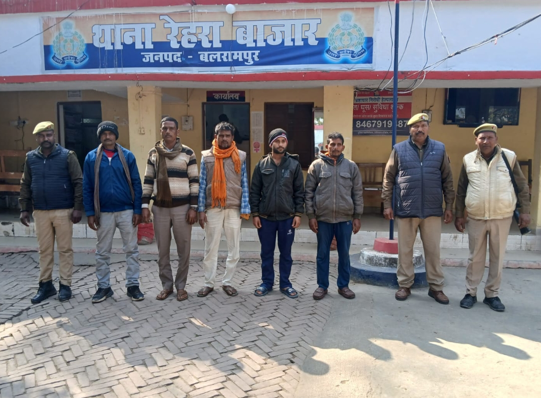 बलरामपुर। पुलिस अधीक्षक बलरामपुर विकास कुमार द्वारा अपराध एवं अपराधियों की रोकथाम तथा वांछित/वारंटी अभियुक्तों की गिरफ्तारी हेतु चलाए जा रहे अभियान के क्रम में अपर पुलिस अधीक्षक विशाल पाण्डेय एवं क्षेत्राधिकारी उतरौला राघवेन्द्र सिंह के कुशल पर्यवेक्षण में तथा प्रभारी निरीक्षक थाना रेहरा बाजार दुर्गेश कुमार सिंह के नेतृत्व में 22 जनवरी 2026 को थाना रेहरा बाजार पुलिस टीम द्वारा मा0 न्यायालय ACJJD/JM उतरौला द्वारा निर्गत आदेश के क्रम में 1-अभि0/वारण्टी टिल्लू पुत्र कुतुब पठान नि0 मानापार बहेरिया थाना रेहरा बाजार जनपद बलरामपुर सम्बन्धित मामला सं0 1723/1992 धारा 323/504/427 भा0द0वि0 2-अभि0/वारण्टी तुलाराम पुत्र प्रसाद 3. रामचन्दर पुत्र प्रसाद नि0गण अगया बुजुर्ग थाना रेहरा बाजार जनपद बलरामपुर सम्बन्धित मामला सं0 604/25 धारा 115(2)/352/351(3)/117(2) बीएनएस 4- वारण्टी सन्तोषी पुत्र झग्गर नि0 भुलभुलिया मश भैरवा थाना रेहरा बाजार जनपद बलरामपुर सम्बन्धित मामला सं0 272/2004 धारा 5/25ए आर्म्स एक्ट 5-अभि0 वारण्टी आकाश उर्फ सौरभ पुत्र चन्द्रप्रकाश नि0अधीनपुर थाना रेहरा बाजार जनपद बलरामपुर सम्बन्धित मामला सं0 1340/21 धारा 427/323/504/506 भा0द0वि0 को गिरफ्तार कर मा0 न्यायालय रवाना किया गया ।